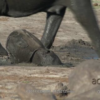 African Elephant Calf stuck in thick mud, mother rescue baby.