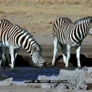 Three zebras drinking in the water point [1] Walking in the water across the camera