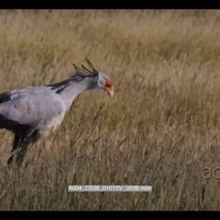 close up shot of a secretary bird, sagittarius serpentarius hunting on the ground