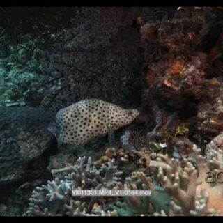 Close up shot of a Barramundi cod, Pantherfish or Humpback Grouper or Polkadot Grouper, Cromileptes altivelis Bluestreak at a cleaning station being cleaned by a Cleaner wrasse, Lebroides dimidiatus