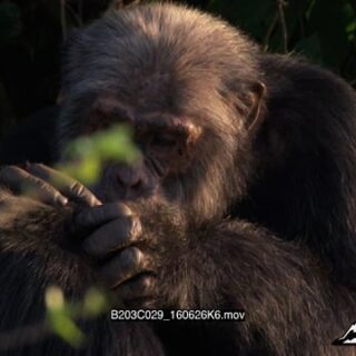 Chimpanzees grooming one another. Close-Up.