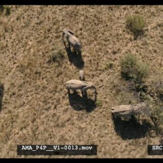 Impala grazing and looking at the camera with a small herd of African Elephant Grazing in the background