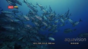 Close up shot of large school of bigeye trevally, bigeye jacks