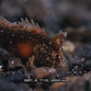 Macro shot of a small orange juvenile scorpionfish, Scorpaenidae sp