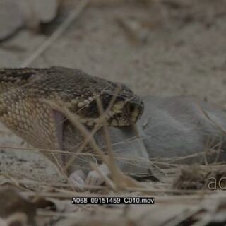Western diamondback rattlesnake feeding on a dead carcass.