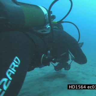 Close up shot of a large school of Blue maomao swimming in right in front of the camera.