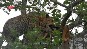 Leopard Feeding on Antelope Kill on top of the tree LA WS