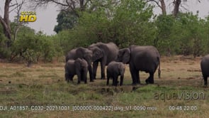 Select options DownloadYoung calves and adult African Elephant herd standing, grazing on grass and looking around, MLS;DAY
