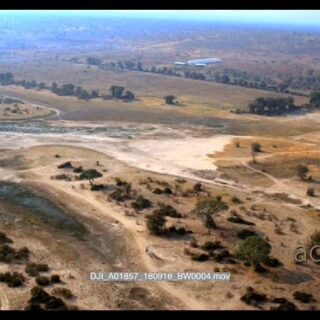 Aerial shot along chobe river during dry season showing elephant corridor