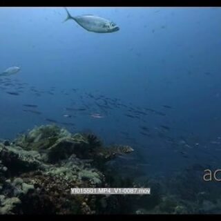 wide shot of a large school of anchovy stolephorous indicus. The sea is so thick with Anchovy that one can hardly see. looks like its raining fish. Note the predator fish that have guided the guided the Anchovy down to the reef making it easier to hunt them