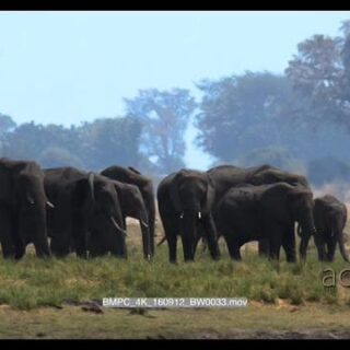 Elephant herd grazing on chobe river shimmering heat haze