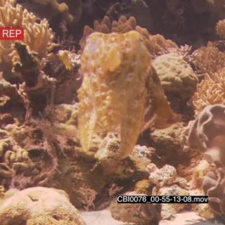 Cuttlefish on coral reef being defensive UW