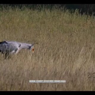 close up shot of secretary bird, sagittarius serpentarius catching something nad eating it