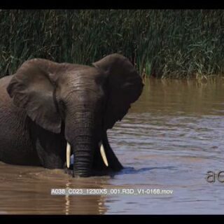 Elephant standing inside water blowing muddy water with its trunk.