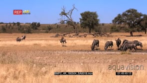 Wide pan shot of a large herd of wildebeest gemsbok in the background