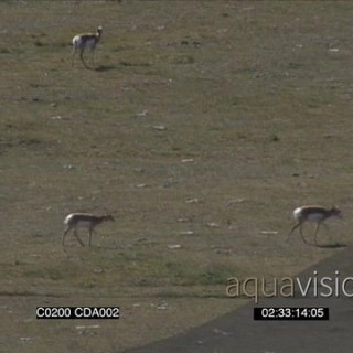 A herd of Pronghorn Antelopes walking around, standing and grazing GENERAL BEHAVIOUR