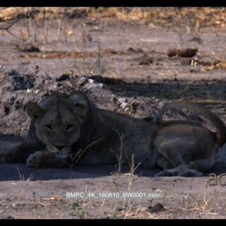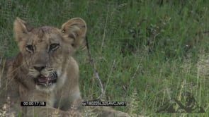 Young Lion cub Sitting Looking around the file Breathing Heavily GREEN