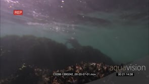 Sea otter foraging for preys on the sea floor/corals. UW, DAY.