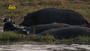 Bloat of young and adult Hippo submerging, wading and looking around, AW;DAY