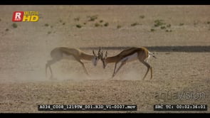 Two male springboks fight and another springbok chase them