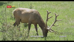 Elk standing, walking and grazing PROFILE GREEN