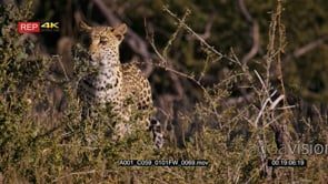 Tracking shot of a leopard listening and walking on a hunt