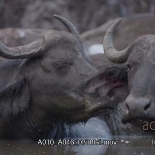 Herd of Cape Buffalo laying in a body of water and ruminating.