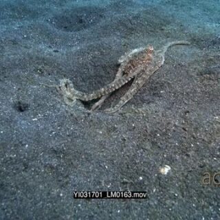 White shot of a white-v octopus, Long arm octopus, Abdopus sp slidding along the sea bed