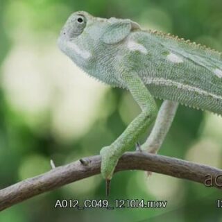 Veiled Chameleon walking back and forth, looking around and checking territory.