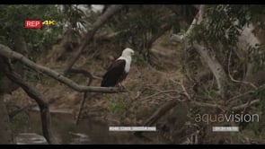 African Fish Eagle standing on tree looking around LS