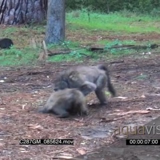 Grizzly Bears chase salmon, two fight, female catch salmon feeding