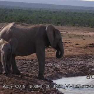 Elephant drinking with two baby elephant sniffing the air and walk around