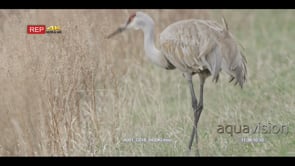 Sandhill crane walking around and feeding WS GOOD LIGHT