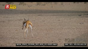 Tilt up shot from a springbok to three teenage lions on the red desert dunes