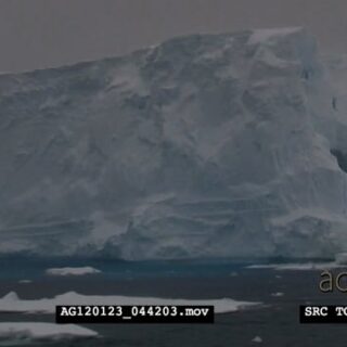 Sea cave and ice floes around, PAN shot. Snow.