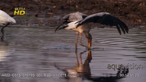Select options DownloadYellowbilled Stork walking, searching and foraging for aquatic food and spreading wings, PAN;LATE AFTERNOON.