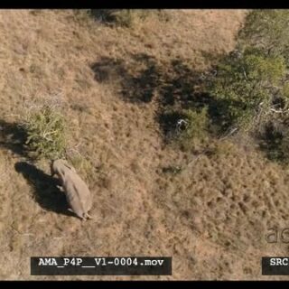 Aerial drone over African elephant feeding off bushes