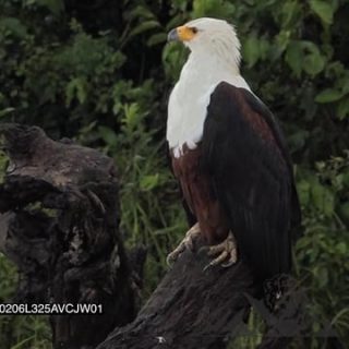 African Fish Eagle Standing on a dead tree Looking around the Woodlands GOOD LIGHT