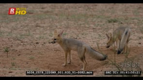 Two juvenile cape foxes out of their burrows after the rain shaking off water when the one then trots off to her mother