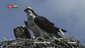 female and immature osprey looking, female calling in nest