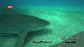 Tiger Shark swimming along ocean floor UW