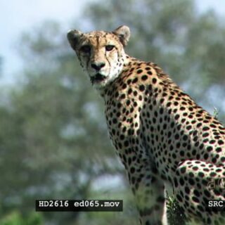 Cheetah standing on anthill mound, looking alert look for prey OTS WS zoom MCU