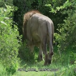 African Male Lion laying down, standing and walking in the bush.