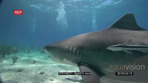 Tiger Sharks swimming between Scuba Divers UW