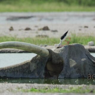 Black-winged Stilt standing and feeding on Elephant carcass.