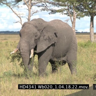 African Elephant walking and grazing on bushveld LS PAN