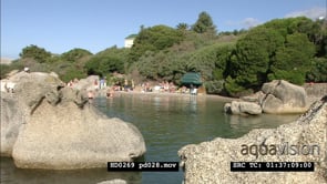 African Penguins at Boulders Beach, with beachgoers and bathers
