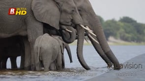Select options DownloadYoung and adult of African Elephant herd standing and drinking water, MLS.