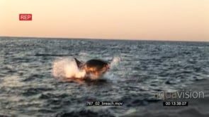 Great White Shark jumping out of ocean fishing Small Breach WS HAND