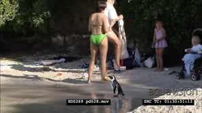 African Penguins at Boulders Beach, with beachgoers and bathers